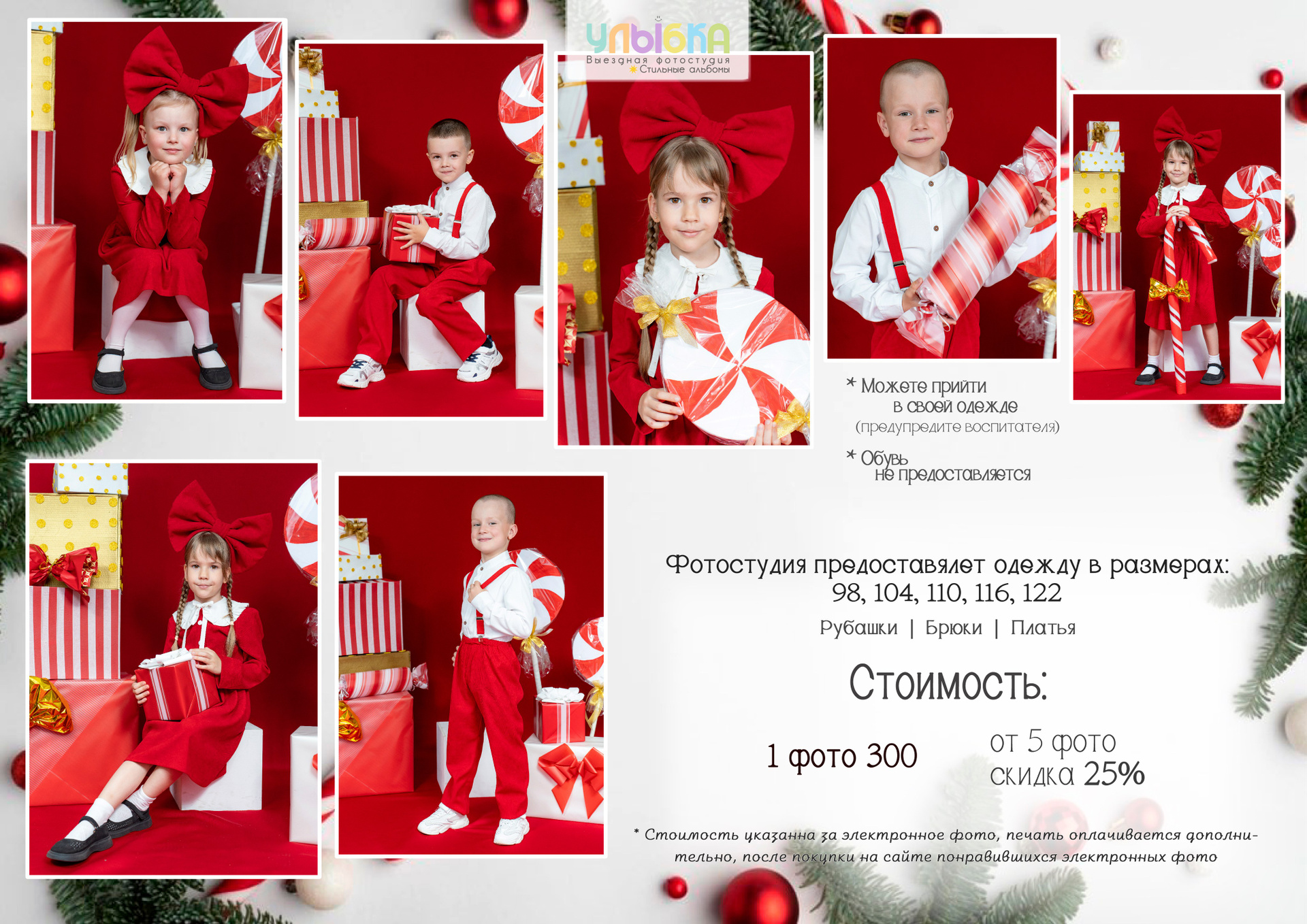 Вам красивые фото на память и свободное время, нам приятные эмоции от работы с вашими детьми.